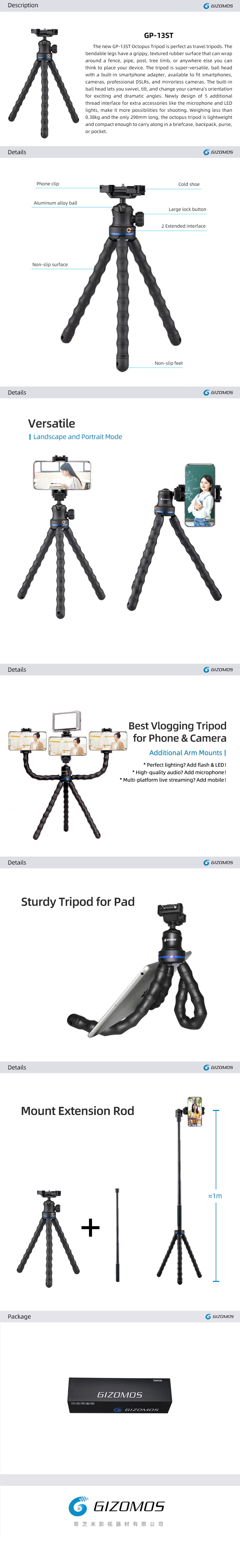 Gizomos gozhimi GP-13ST Octopus tripod stand SLR micro single camera mobile phone tripod mini portable self timer Octopus bracket Original price was: 80 AED.50 AEDCurrent price is: 50 AED. Inclusive vat Sold By: estoreCompare